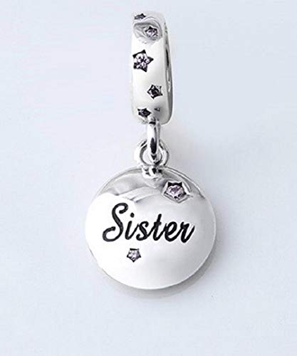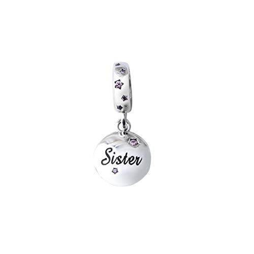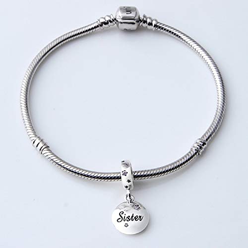 Ciondolo in argento Sterling 925 con ciondolo a forma di disco con zirconia cubica, compatibile con braccialetti Pandora e collane con charm europei da 3 mm
