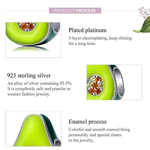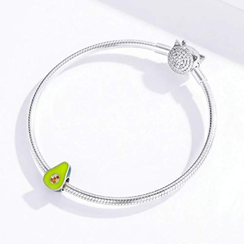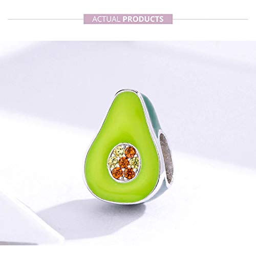 FeatherWish - Ciondolo a forma di avocado, in argento Sterling 925, con smalto verde e zirconi cubici, compatibile con braccialetti Pandora e braccialetti europei da 3 mm