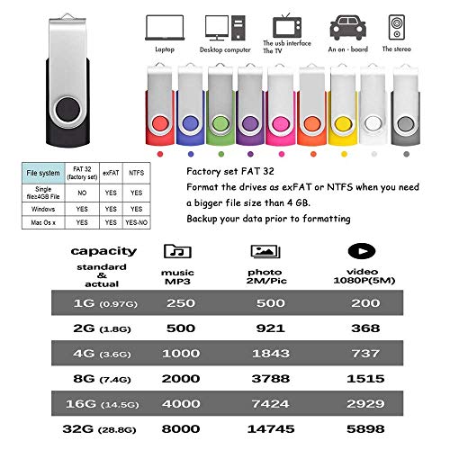 FEBNISCTE 10 pezzi Mix di colori 1 GB 2 GB 4 GB 8 GB 16 GB USB Stick multicolore 2er Pack Bunt 32 GB