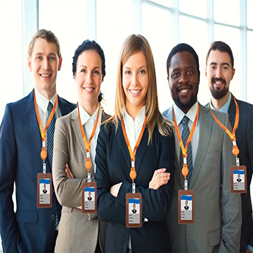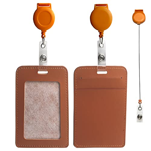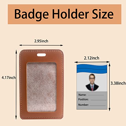 Febsow Porta Badge Pelle PU, Porta Tesserino Verticale in Pelle, Porta Badge de Collo con Cordino retrattile, per il collo per ufficio, studenti, dipendenti, insegnanti, infermieri (Marrone)