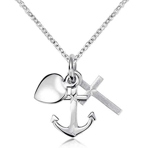 Ciondolo in argento 925 con 3 simboli, composto da fede (crocie), amore (cuore), speranza (ancora). Il gioiello proviene da fabbri tedeschi e offre la migliore qualità.