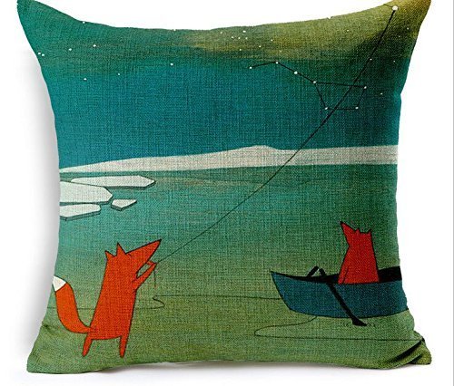 Federa copricuscino in misto lino/cotone, motivo con gabbia e uccellino, 45 x 45 cm, cotone/lino, Green, 45 cm