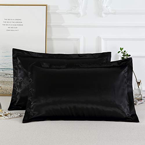 Federa per cuscini, effetto seta satinato, dimensione queen/standard, confezione da 2 pezzi, grigio, Seta Satin, Nero, Standard