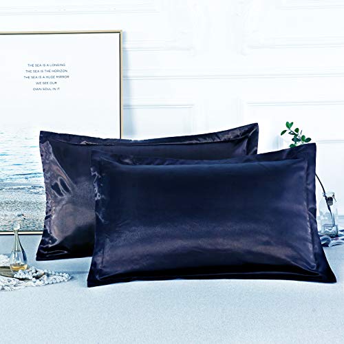 Federa per cuscini, effetto seta satinato, dimensione queen/standard, confezione da 2 pezzi, grigio, Seta Satin, Blu marino., Standard
