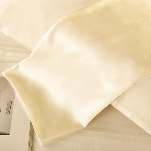 Federa per cuscini, effetto seta satinato, dimensione queen/standard, confezione da 2 pezzi, grigio, Seta Satin, Beige., Standard