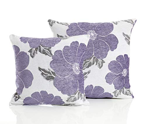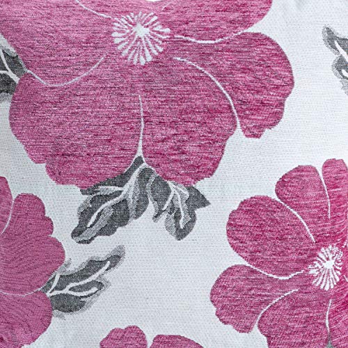 Federa per cuscino in ciniglia, motivo papavero, 45 x 45 cm, colore nero.