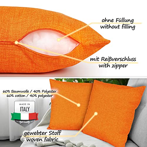 Federa per cuscino, cuscino decorativo, effetto lino, arancione, 40 x 40 cm, senza imbottitura, colore: arancione