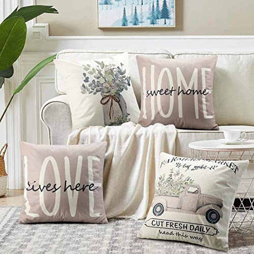 Federa per cuscino 45 x 45 cm, lavabile, in lino, cuscino quadrato esterno, impermeabile, foglie verdi di camion casa, motivo federa per patio, giardino, divano, letto, sedia, decorazione soggiorno,