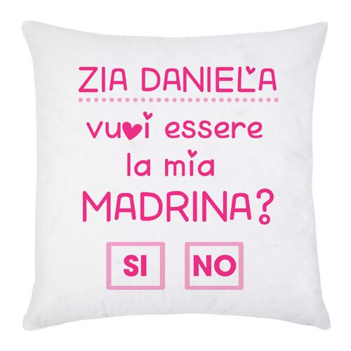 Federa per Cuscino Zia Vuoi Essere la mia Madrina? Si o No Personalizzato con Nome, Divertente Regalo per Battesimo!