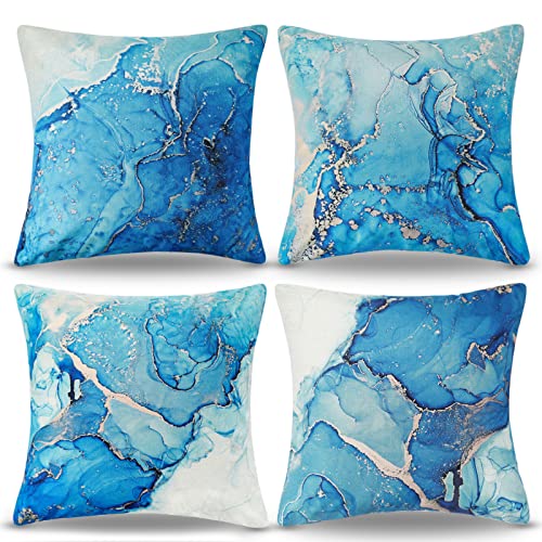 Federe Cuscini 40x40 Cuscini Divano Blu Copricuscini Divano Marmo Fodere Cuscini Oro Arte Astratta Copricuscino Marini Cuscini Moderni Divano Set di 4 per Divano Camera da Letto Decorazione del Divano