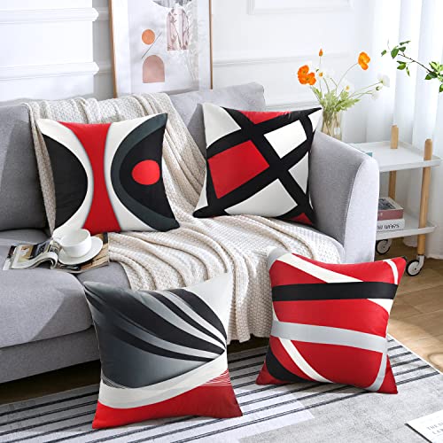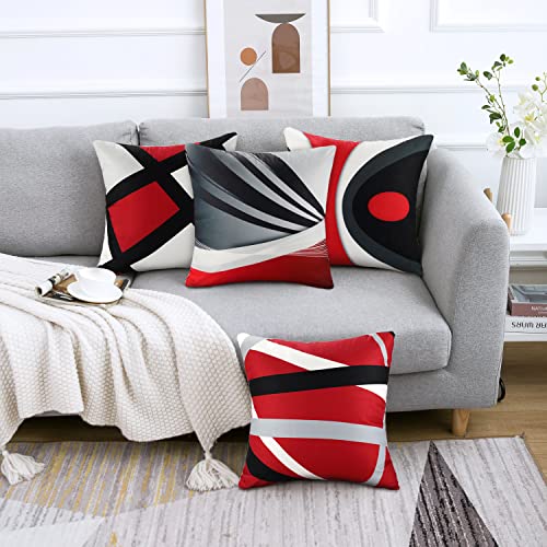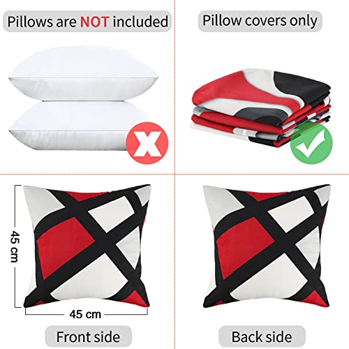 Federe Cuscini 45x45 Velluto Copricuscini Divano Decorativi Cuscini Rosso Nero Grigio Irregolare Linea Astrazione Copricuscino Moderni Super Morbido Doppia Faccia Set Di 4 Per Per Soggiorno Divano