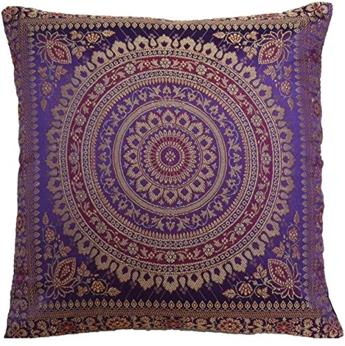 Federe per cuscini Banarsi, in seta, stile etnico, con mandala indiano, 40,6 x 40,6 cm Purple