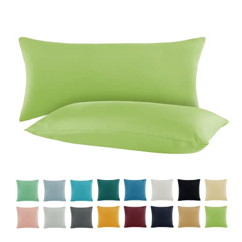 SHC - Set di 2 federe per cuscini cotone 100% con cerniera, 100% cotone, verde mela/verde chiaro, 40 x 80 cm