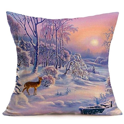 Federe Cuscini,Fittingran Federa di Natale Stampata a Neve in Un Piccolo Villaggio di Montagna Natale Stampa Tintura Divano Letto Home Decor Cuscino Copri Cuscino (E)