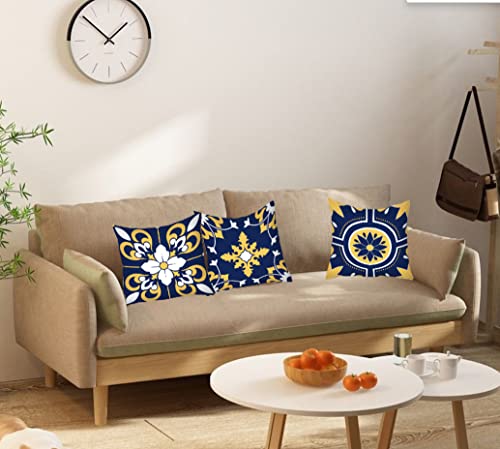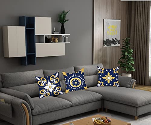Set di 4 federe per cuscini geometriche con fiori blu e gialli, per soggiorno, divano, letto, ufficio, per casa, giardino, casa e casa, casa, casa, giardino, casa colonica, divano, 40 x 40 cm