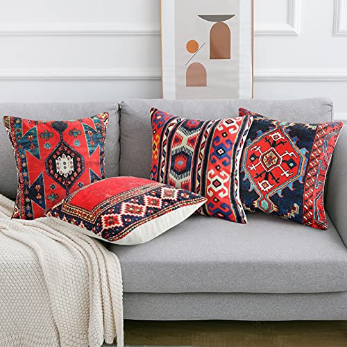 Federe per Cuscino Cotone Biancheria 45x45 cm Cuscini Divano Fodera per CuscinI in Astratta Tappeto Turco Modello Federe in Stile Kilim set di 4 per Soggiorno Sedia Divano,Rosso
