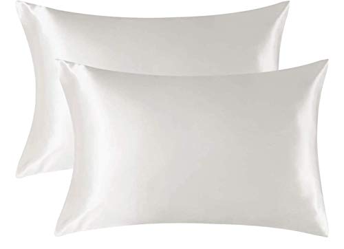 Set di 2 federe in raso per capelli e pelle, più morbide della seta, bianche e setose, traspiranti, anti-rughe, con chiusura a busta, per letto queen size (50 x 75 cm)