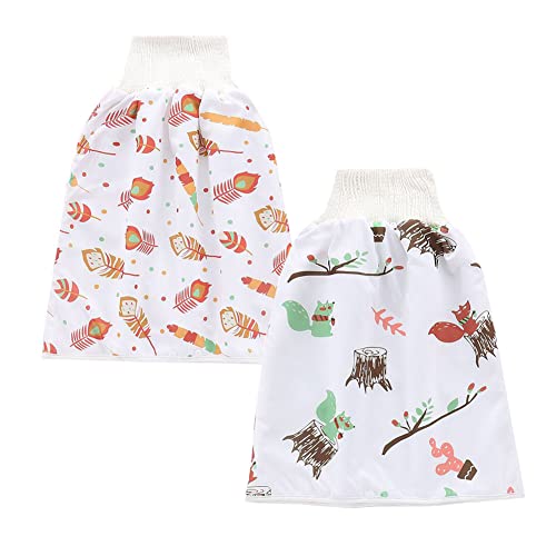 FedMois Confezione da 2 Mutandine di Apprendimento Gonne Pannolini Bimbi Bambini Cotone Assorbente Impermeabile, scoiattoli e Piume, 0-3 Anni