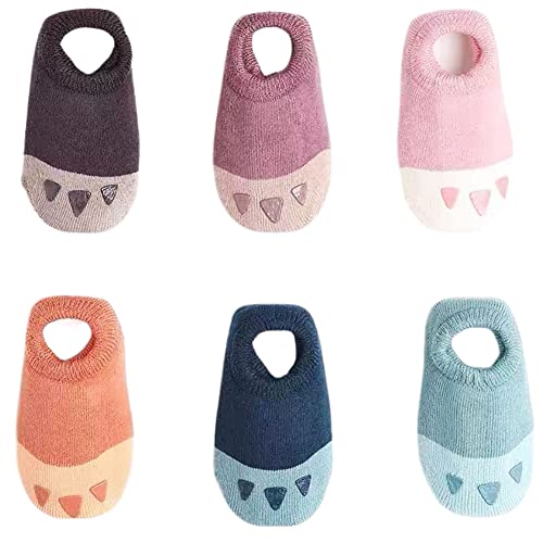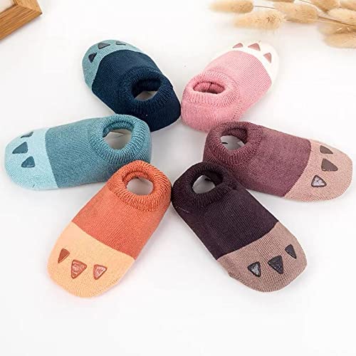 FedMois 6 paia calzini antiscivolo invisibili in cotone invernali termici bimbi bambini, zampa di gatto, 1-3 anni