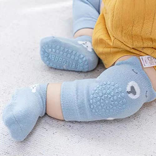 FedMois 3 paia Ginocchiere per gattonare + 3 paia Calzini antiscivolo in cotone bimbi bambini motivi animali, grigio, blu e beige, 18-36 mesi