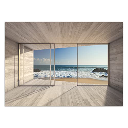 Feeby Carta Da Parati Fotografica illusione 3D Cielo Vista della spiaggia 400x280 cm blu Moderne Decorazione Da Muro Poster Gigante Design Soggiorno Ufficio Camera Da Letto Onde Oceano Mare