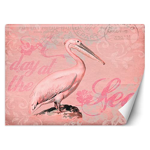Feeby Carta Da Parati Pellicano astratto 100x70 cm rosa XXL Decorazione Fotomurali Tessuto Non Tessuto Soggiorno Camera da letto Moderne Design Iscrizione Vecchia cartolina