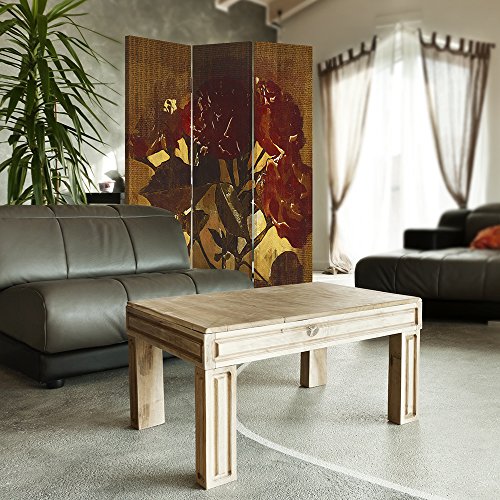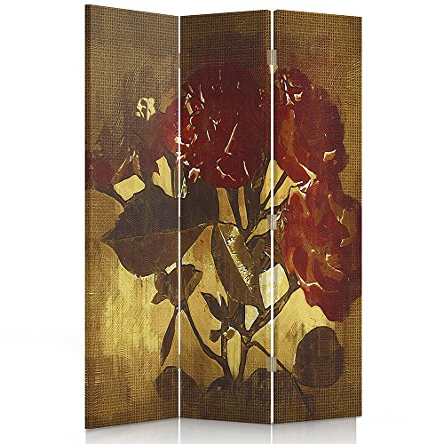 Feeby Frames Il paravento Stampato su Telo,Il divisorio Decorativo per Locali, bilaterale, a 3 Parti (110x150 cm), Vintage, Rose, Vecchia Fotografia, Rosso, Verde, Beige