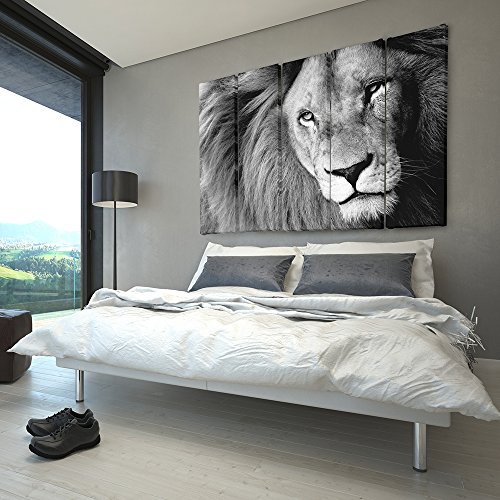 Feeby Frames, Quadro multipannello di 5 Pannelli, Quadro su Tela, Stampa Artistica, Canvas Tipo C, 100x150 cm, Leone, Nero E Bianco