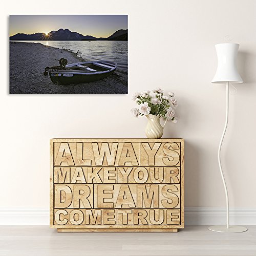 Feeby Frames, Quadro Pannelli, Pannello Singolo, Quadro su Tela, Stampa Artistica, Canvas 60x80 cm, Vista, Marine, Barca, Spiaggia, Colline, Sole, Multicolor