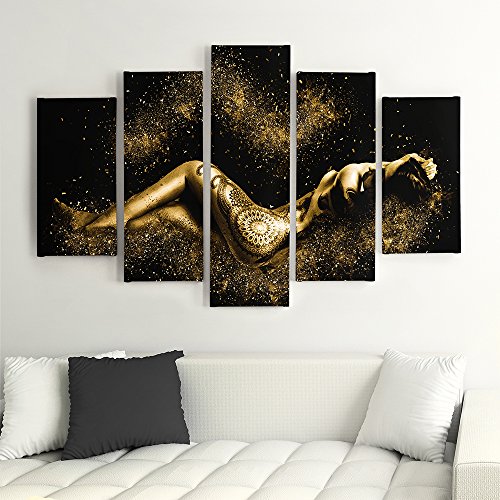 Feeby Quadro su Tela multipannello 5 pannelli Tipo A 200x100 cm Donne 1 pezzo Stampa Fotografia Decorazione da parete Immagini Moderni per Soggiorno Camera da Letto Ufficio Cucina Corpo Oro Nero