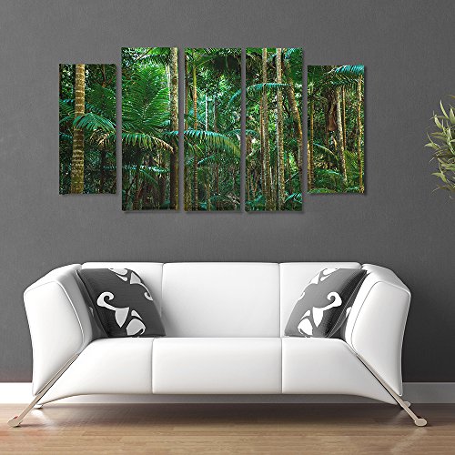Feeby Quadro su Tela 5 pezzi Giungla Tipo B 200x100 cm Stampa Decorazione da parete Immagini Moderni per Soggiorno Camera da Letto Ufficio Cucina Felce Foresta Natura Verde