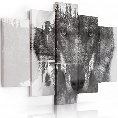 Feeby Quadro Su Tela 5 Pezzi Lupo 100x200 cm Tipo A Stampa Murale Fotografia Decorazione da parete Immagini Moderni per Soggiorno Camera da Letto Ufficio Cucina Bianco E Nero