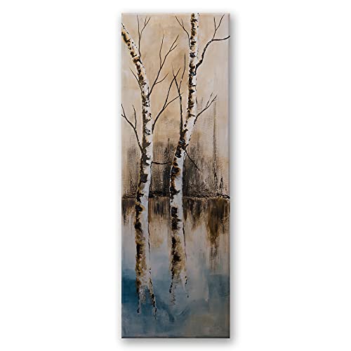 Feeby Quadro Tela Non Tessuta Alberi Della Natura 40x120 cm Foto Stampa Moderna Pronta Per Essere Appesa Stagno Del Lago Di Betulla beige