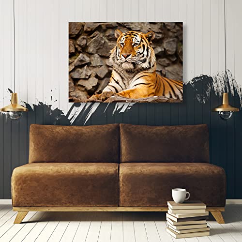 Feeby Quadro Tela Non Tessuta Tigre del Bengala Rocce Posa Grande gatto 30x20 cm Qualita Fotografica Stampa D'Arte Camera Da Letto Riposo Predatore Animali selvatici arancione