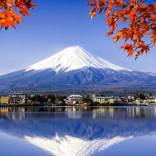 Feeby Quadro Tela Non Tessuta Vista Attraverso La Finestra Illusione 3D 90x60 cm Decorazione murale Immagini Moderni Soggiorno Monte Fuji Vulcano Giappone viola