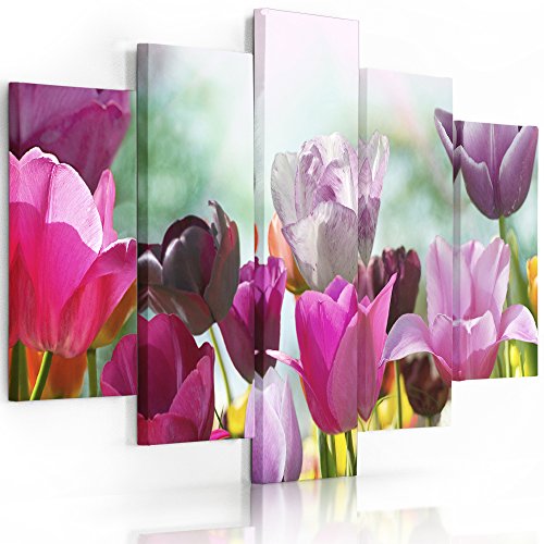 Feeby Quadro Su Tela Tulipani 5 Pezzi 150x100 cm Tipo A Stampa Murale Fotografia Decorazione da parete Immagini Moderni per Soggiorno Camera da Letto Ufficio Cucina Colorati
