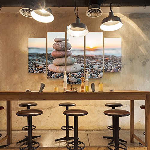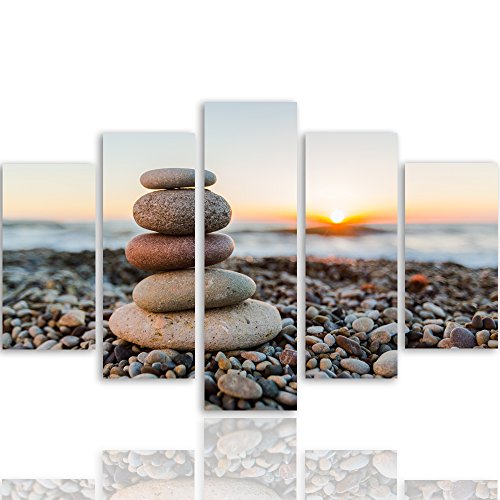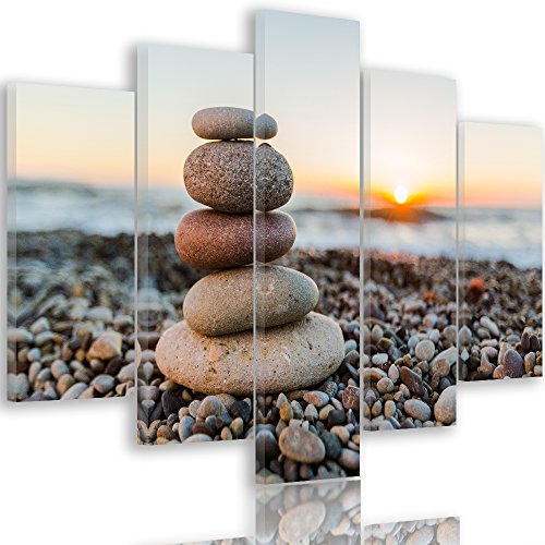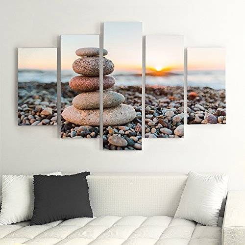 Feeby Quadro Su Tela Vista Zen Composizione 5 Pezzi Tipo A 100x70 cm Stampa Murale Fotografia Immagini Moderni per Soggiorno Camera da Letto Ufficio Cucina Ciottoli Ghiaia Spiaggia Beige Bianco