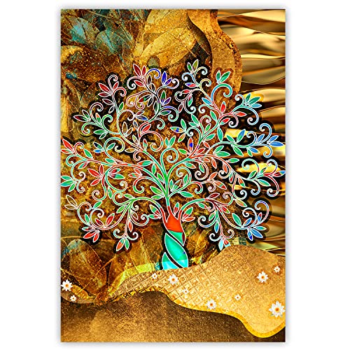 Feeby Stampa Tela Gustav Klimt Albero Della Vita Stile Moderno Rami A Spirale 130x180 cm per Un Facile Montaggio Decorazione murale Immagini Moderni Soggiorno Pittura Onde d'oro marrone