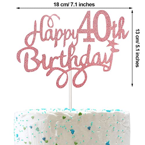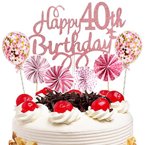 Feelairy Decorazione Torta Compleanno 40 anni Donna, Topper di Compleanno Happy Birthday Oro Rosa, Glitter Torta Topper Palloncini Coriandoli per Decorazione Torta 40 Compleanno Donna