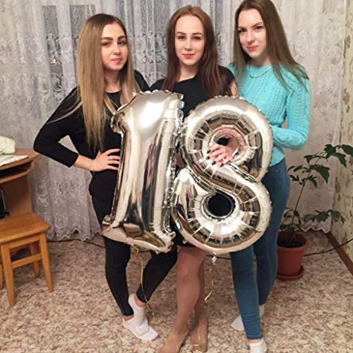 Feelairy 2 Palloncini Numero 18 Argento, Gigante Palloncino Foil Numero 18 Argento 40" Palloncini ad Elio Numero 18, Decorazione Festa di Compleanno per Ragazze Ragazzo (100cm)