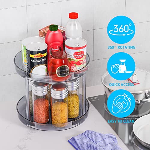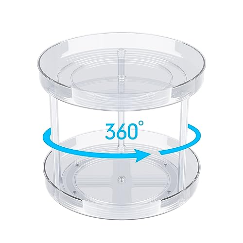 Feelhap Organizer Cucina a 2 Livelli, Portaspezie Girevole in Plastica Vassoio Priva di BPA,Portaspezie Rotante Trasparente Porta Spezie per Cucina Bagno e Superficie di Lavoro (2×23.5cm)