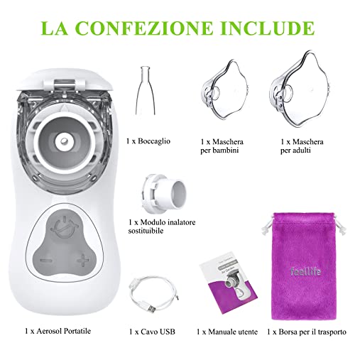 FEELLIFE Aerosol Portatile Silenzioso, Macchina Aerosol Adulti e Bambini, Nebulizzatore Aerosol Mesh Velocità di Nebulizzazione Regolabile