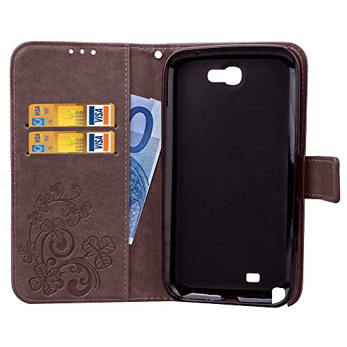 Feeltech Custodia Compatibile per amsung Galaxy Note 2 Flip Pieghevole Magnetica Custodia in Pelle PU Chiusura Magnetica Cover - Trifoglio/caffè