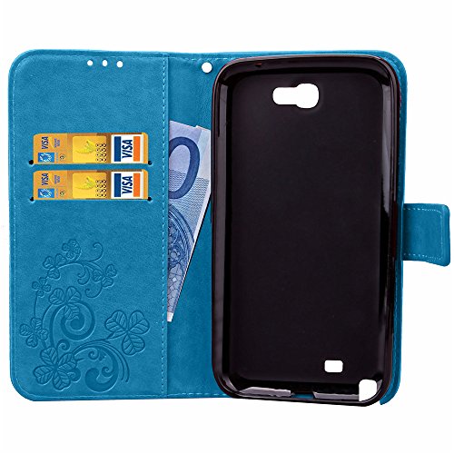 Feeltech Custodia Compatibile per amsung Galaxy Note 2 Flip Pieghevole Magnetica Custodia in Pelle PU Chiusura Magnetica Cover - Trifoglio/Blu