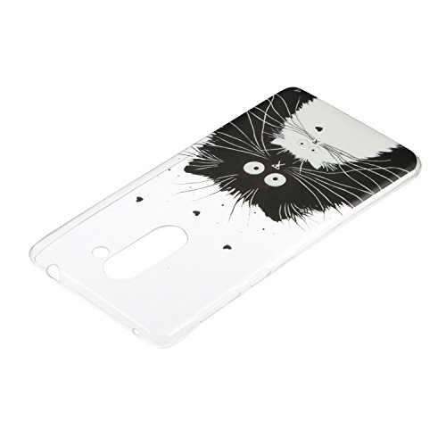 Feeltech Custodia Compatible for Huawei Honor 6X Flessibile Gel Soft TPU Silicone Case di Gomma con Il Motivo Divertente di Disegno Sveglio Shock-Assorbire Protettiva Cover-Nero Bianco Cat