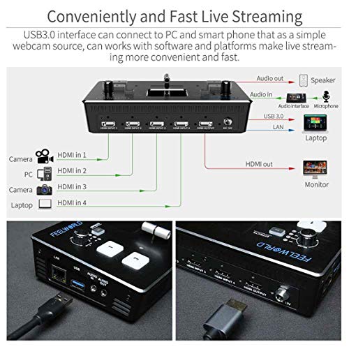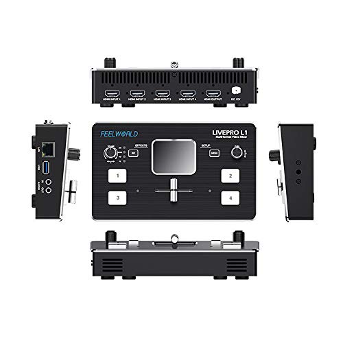FEELWORLD LIVEPRO L1 mixer video multi-formato 2.0 "TFT Display 4 x ingressi HDMI produzione multi-camera in tempo reale live streaming Controllo remoto tramite PC/Samrt Phone