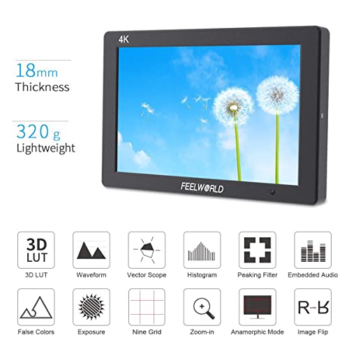 Display LCD da 7", Full HD 1920x1200: FEELWORLD T7 PLUS è un monitor da 7 pollici Full HD. Supporta l'ingresso e l'uscita del segnale 4K HDMI @30Hz. Il T7 PLUS con Full HD 1920x1200 ad alta risoluzione Precise Color, un impressionante 323 PPI (pixel per pollice).