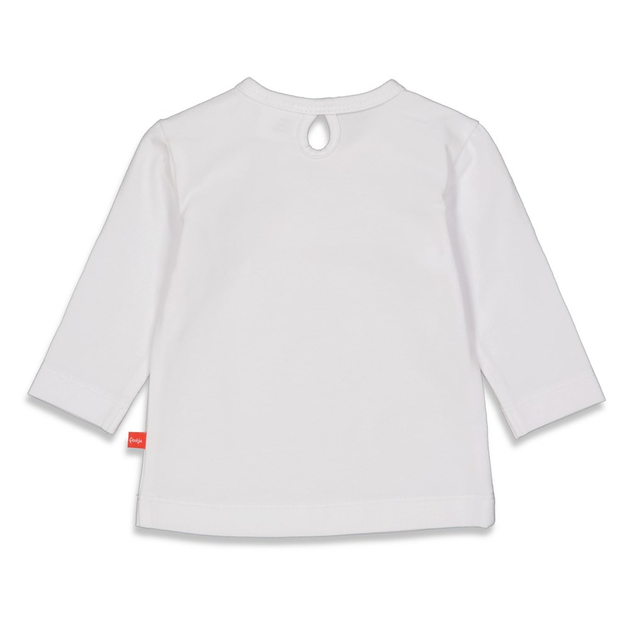 Dettagli del prodotto: Camicia a manica lunga con grafica print Collo rotondo Scollo a goccia sul retro Premi i tacchetti su una spalla Dettagli con volant Materiale e cura: Materiale: 92% cotone biologico, 8% elastan Lavabile fino a 40 °C Non asciugare in asciugatrice Appendere ad asciugare Non stirare a caldo