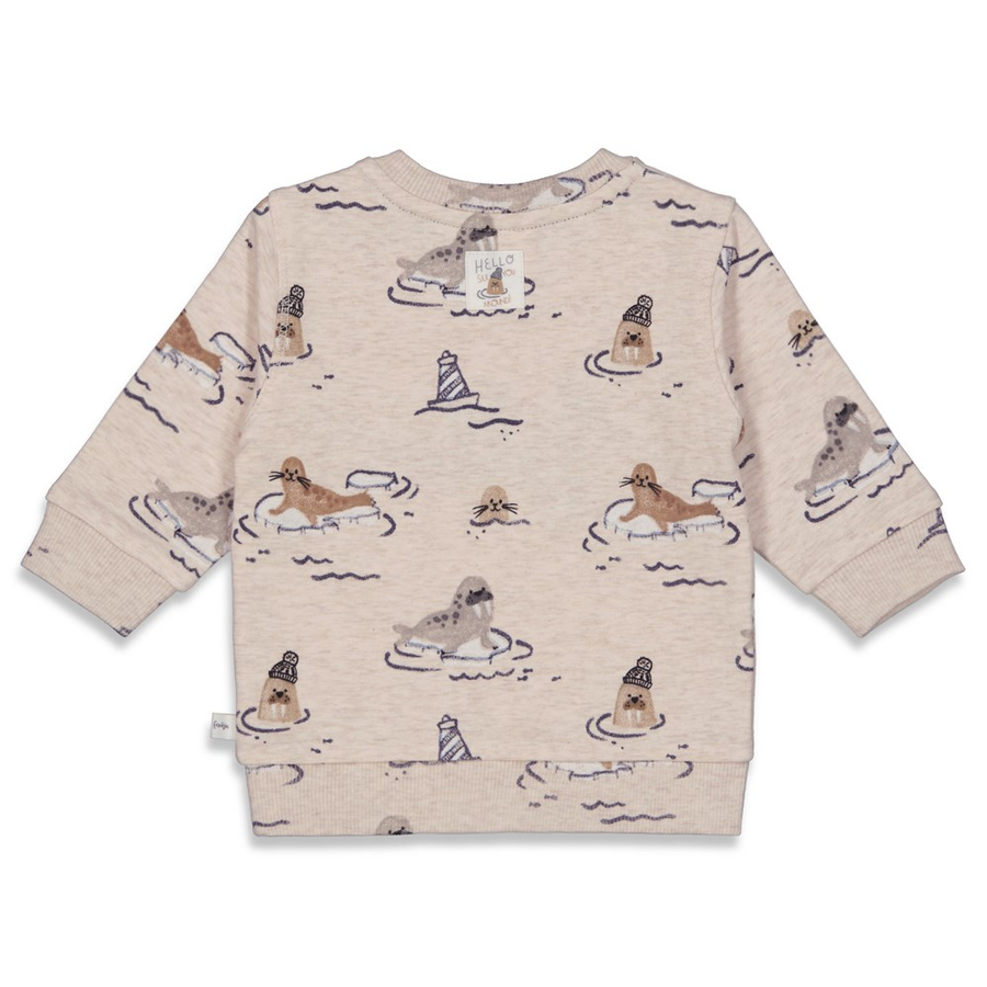 Dettagli del prodotto: Felpa con Allover print all'interno di ge peach ed Collo rotondo Borchie a pressione su una spalla Polsini a coste morbide Materiale e cura: Materiale: 96% cotone biologico, 4% elastan. Lavabile fino a 40 °C Non asciugare in asciugatrice Non stirare a caldo