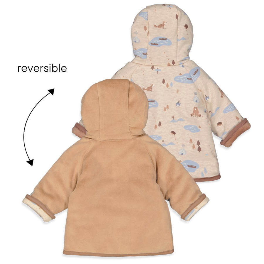 Dettagli del prodotto: Giacca reversibile con cappuccio 1° lato: tinta unita, con tasca decorativa, materiale esterno: spugna 2° lato: Allover print, materiale della tomaia: jersey Abbottonatura con bottoni a pressione Bordi morbidi Materiale e cura: Materiale: 80% cotone biologico, 20% poliestere Lavabile fino a 40°C Non asciugare in asciugatrice Non stirare a caldo